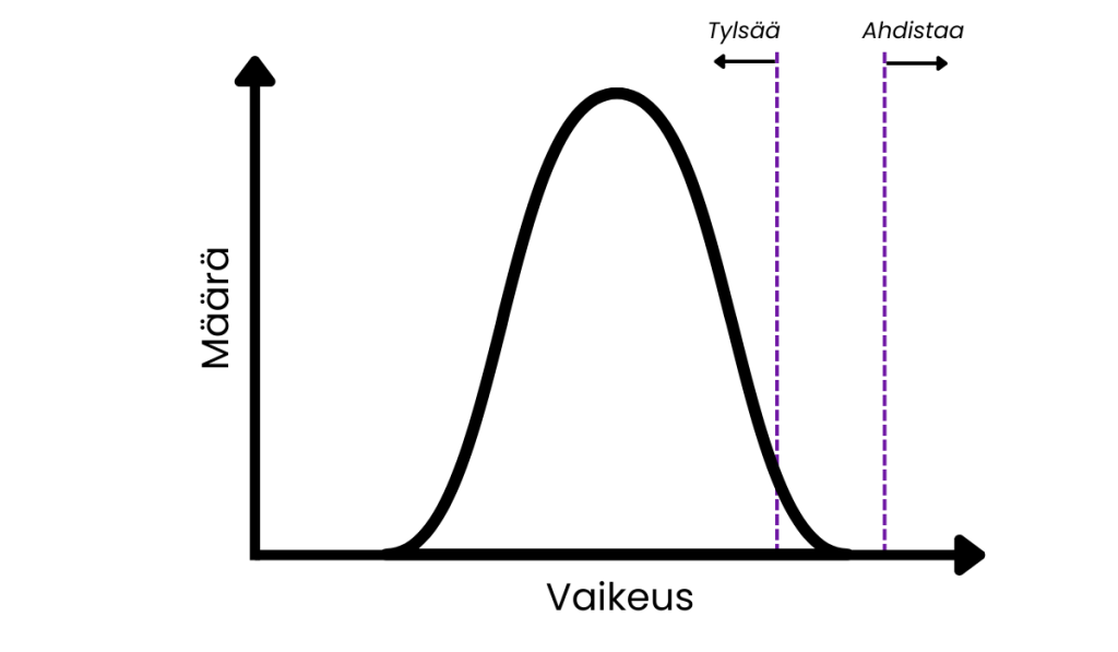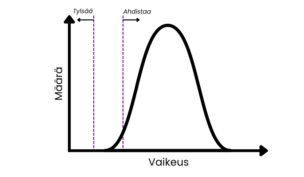 Kun osaaminen siirtyy riittävän pitkälle oikealle, yhä harvempi tehtävä tuntuu aidosti haastavalta. Keskialueen ongelmat ovat ratkaistavissa nopeasti. Ne eivät ahdista – mutta ne eivät myöskään kehitä.